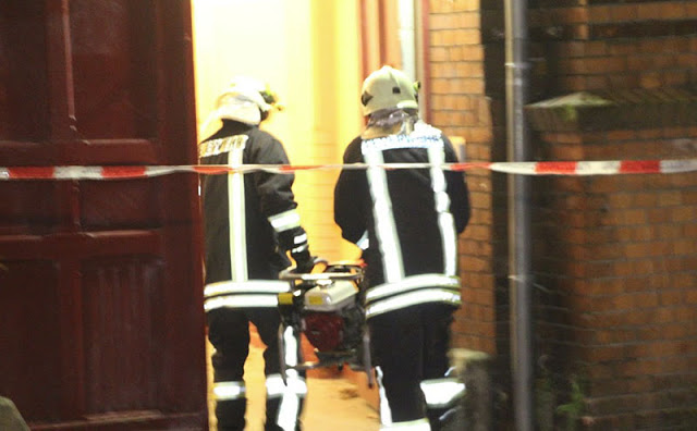 According to the police forensic experts on the scene, a Molotov cocktail had been thrown into the building through a basement window, and had ignited in the basement.