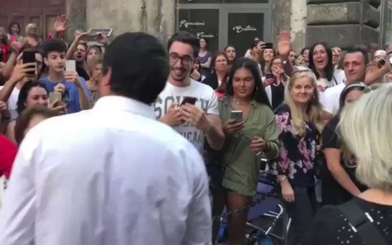 Salvini’s reception in the city—to watch the annual parade of the Festival of Saint Rosa—was marked by crowds spontaneously applauding, hugging, shaking hands, and demanding selfies all along the one kilometer route.