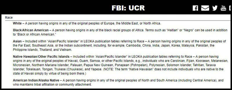 The FBI’s own definition of race defines “White” as follows: