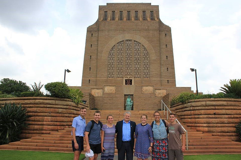 The group also paid a visit to the FAK (Federation of Afrikaans Cultural Organizations) and to Afriforum, an activist movement for all that concerns Afrikaners. They also had the privilege to visit the Voortrekker Monument, which commemorates the Great Trek, and the battle of Blood River (1838), one of the founding events of the Afrikaner people. Dr. Pieter Mulder, a former Member of Parliament and former leader of the Freedom Front party, and an expert on Afrikaner history, was the guide.
