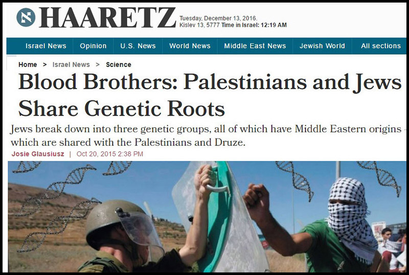 The most dramatic evidence of the similarity of Jews and Palestinians—or, as the studies cited above call the “Middle Eastern” origin, came in 2015 in an extensive review of Palestinian and Jewish DNA which showed that “Jews break down into three genetic groups, all of which have Middle Eastern origins—which are shared with the Palestinians and Druze.”