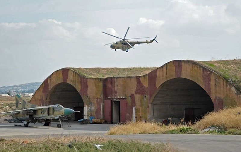 The Homs airfield was hit by three missiles out of the 13 that were fired at it, with five out of nine rockets downed before reaching the Mezzeh airbase, he added.