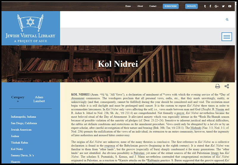 According to the Jewish Virtual Library (JVL)—which is run by the American-Israeli Cooperative Enterprise (AICE) Jewish lobby—the Kol Nidrei prayer “is an Aramaic declaration recited in the synagogue before the beginning of the evening service on every Yom Kippur.”