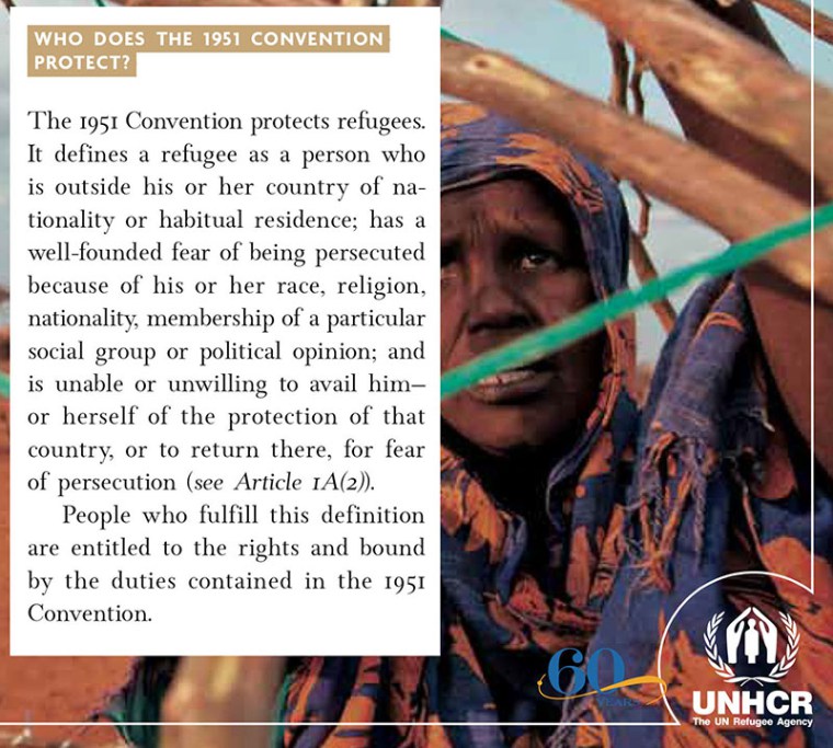 “a person who is outside his or her country of nationality or habitual residence; has a well-founded fear of being persecuted because of his or her race, religion, nationality, membership of a particular social group or political opinion; and is unable or unwilling to avail him—or herself of the protection of that country, or to return there, for fear of persecution.” (see Article 1A(2)).