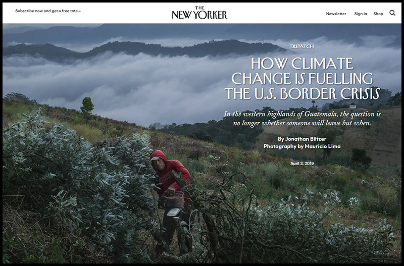 This claim is now common in the controlled media: A similar claim was recently made in The New Yorker (“How Climate Change Is Fuelling the U.S. Border Crisis,” April 3, 2019), in which it was said that “In the western highlands of Guatemala, the question is no longer whether someone will leave but when.”