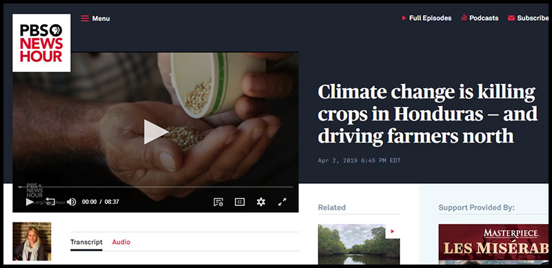 PBS also repeated this claim, saying in a recent report (“Climate change is killing crops in Honduras — and driving farmers north,” Apr 2, 2019)., that “rising temperatures and declining rainfall are killing crops and jeopardizing the farmers’ very survival.