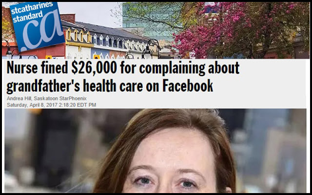The surreal extent of Canada’s far-left nanny-state culture has been illustrated with a fine of $26,000 dished out to a nurse who dared to complain on Facebook about the healthcare treatment afforded to her grandfather.