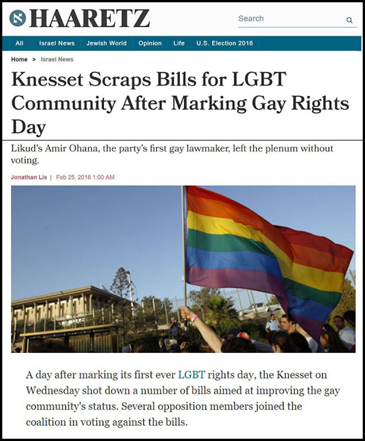 As reported by the Haaretz newspaper in Israel, the Israeli parliament last voted down a number of bills promoting “LGBT rights.”