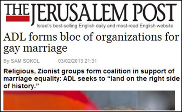 At the same time, the ADL supports the state of Israel—which has outlawed homo marriage and as recently as last year struck down all “transgender” rights in that Jews-only country.