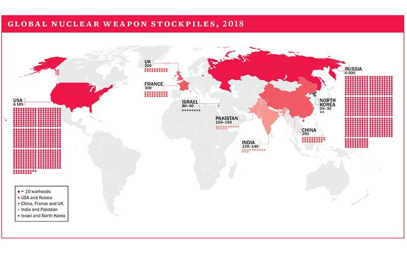 According to the SIPRI report, there are currently nine nations that have nuclear weapons. These countries are the United States, Russia, the United Kingdom, France, China, India, Pakistan, Israel and the Democratic People’s Republic of Korea (DPRK, North Korea).
