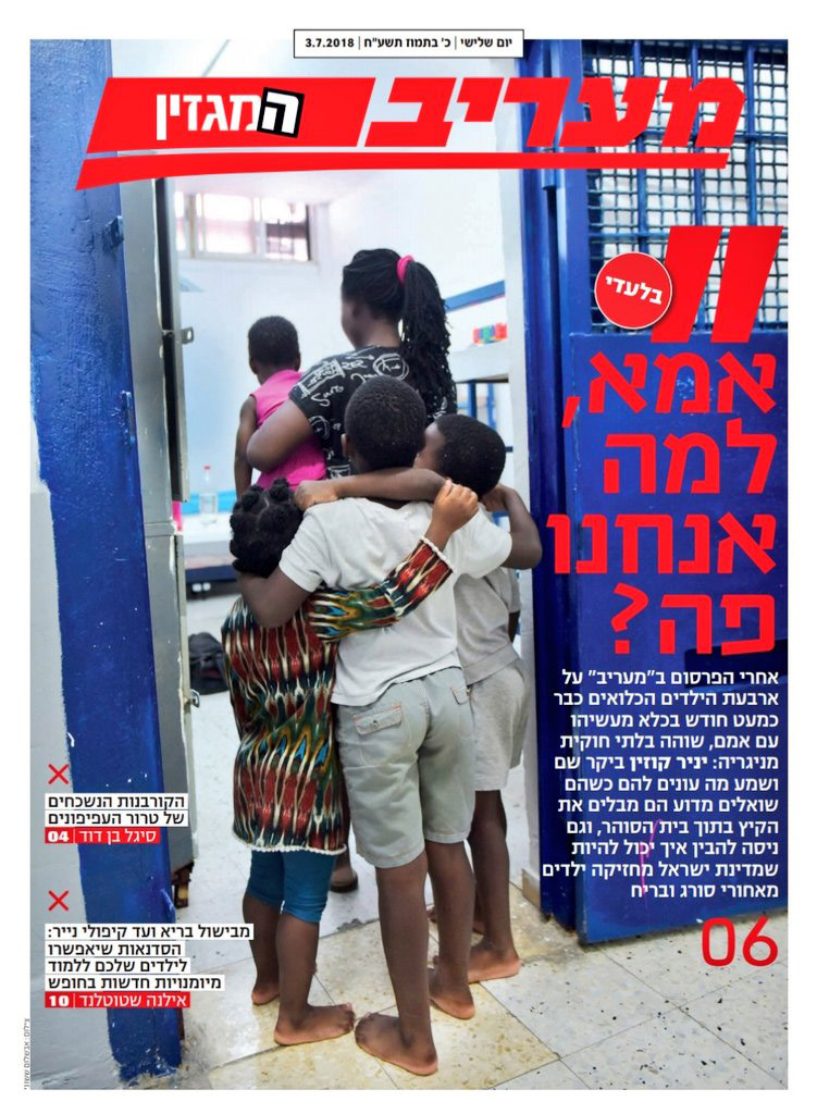According to the Maariv report, the Givon Prison near Ramle in Israel “houses half a dozen children under the age of 7 without appropriate facilities or support staff” whose mothers are awaiting deportation.