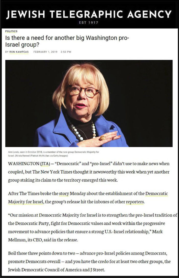According to a report in the Jewish Telegraphic Agency titled “Is there a need for another big Washington pro-Israel group?,” the new lobby is called the “Democratic Majority for Israel.”