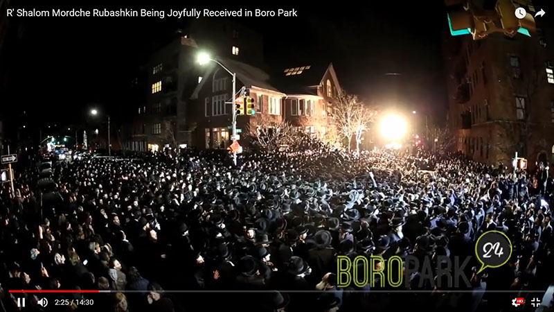 In this video, thousands of Jews gather outside Rubashkin’s home in Boro Park on 55th Street in Boro Park to join the celebrations at the news of his release from jail by President Donald Trump.