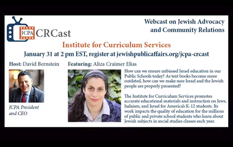 In a January webcast on YouTube, ICS chief Aliza Craimer Elias claimed that “working behind the scenes” through state advocacy organizations ICS had successfully made more than 11,000 changes to U.S. textbooks.
