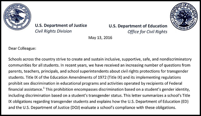 In a letter sent today to all school districts, the DOJ has demanded that schools grant “transgender” access to all restrooms, sports, and accommodation facilities.